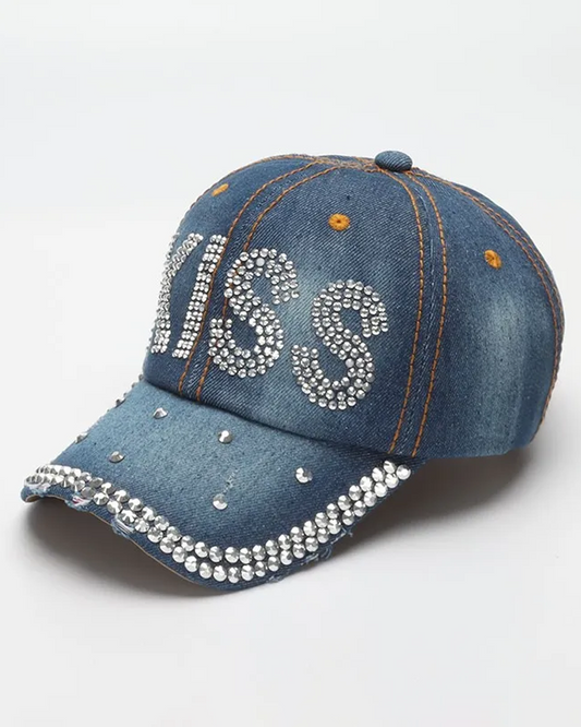 Denim Cap With Rhinestones